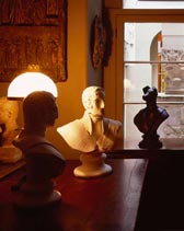 This group of ceramic busts was shown at the Sir John Soane Museum in spring 2013 as part of an exhibition entitled Marking the Line; Ceramics and Architecture. In this group Christie Brown is exploring the idea that collecting on such an obsessional scale as Soaneās was a displacement activity of some kind. Soane came from a working class background and rose to great heights both in his practice and his social sphere, an achievement that was very difficult for someone from that background in those days. He was a difficult character in many ways, one who had fierce pride in his work, and he was very keen to establish an architectural dynasty putting great pressure on his sons to follow in his footsteps. Unfortunately they were very reluctant. Only John Jnr made some attempts to learn the art to appease his father, while the younger son George defied his father and went into the theatre as a writer, eventually alienating his parents irrevocably. As a further expression of his need for recognition, Soane had commissioned a grand marble bust of himself from sculptor Sir Francis Chantry. Struck by the tragic story of this dysfunctional family, Christie made commemorative portraits of each family member, based on the Chantry memorial bust, as an attempt at reconciliation. This included Fanny the dog, who was a key member of the family in the way a pet can be when emotional contact breaks down.