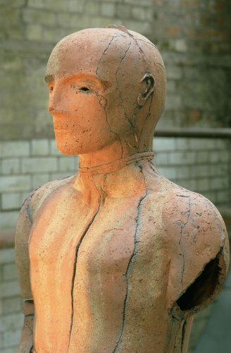 The opportunity offered by a large scale commission from WPT at the Wapping Project to make a body of work for Wapping Power Station in 2000 developed ideas about scale and response to site. Using clay as a metaphor for origin through characters from mythology such as Prometheus, Pygmalion and the Golem this series of work reflected the former use of the power station as a source of power and animation. Small editions of heads and busts were subsequently cast into bronze, a material that shares a long relationship with clay through the process of casting and the metaphorical associations of transformation through fire. A series of heads from this group entitled Lost and Found were made using fired clay and molten bronze in a collaboration with Pangolin Foundry in 2009-10 in which the material interaction contributed to the final outcome.